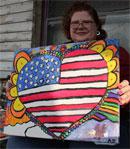 The project’s website features Ms. Fischer’s vivid paintings of owls or hearts or handprints with upbeat messages for world peace. “I want people to know I’m not dangerous,†she says. “They don’t know what a nice person I am.â€